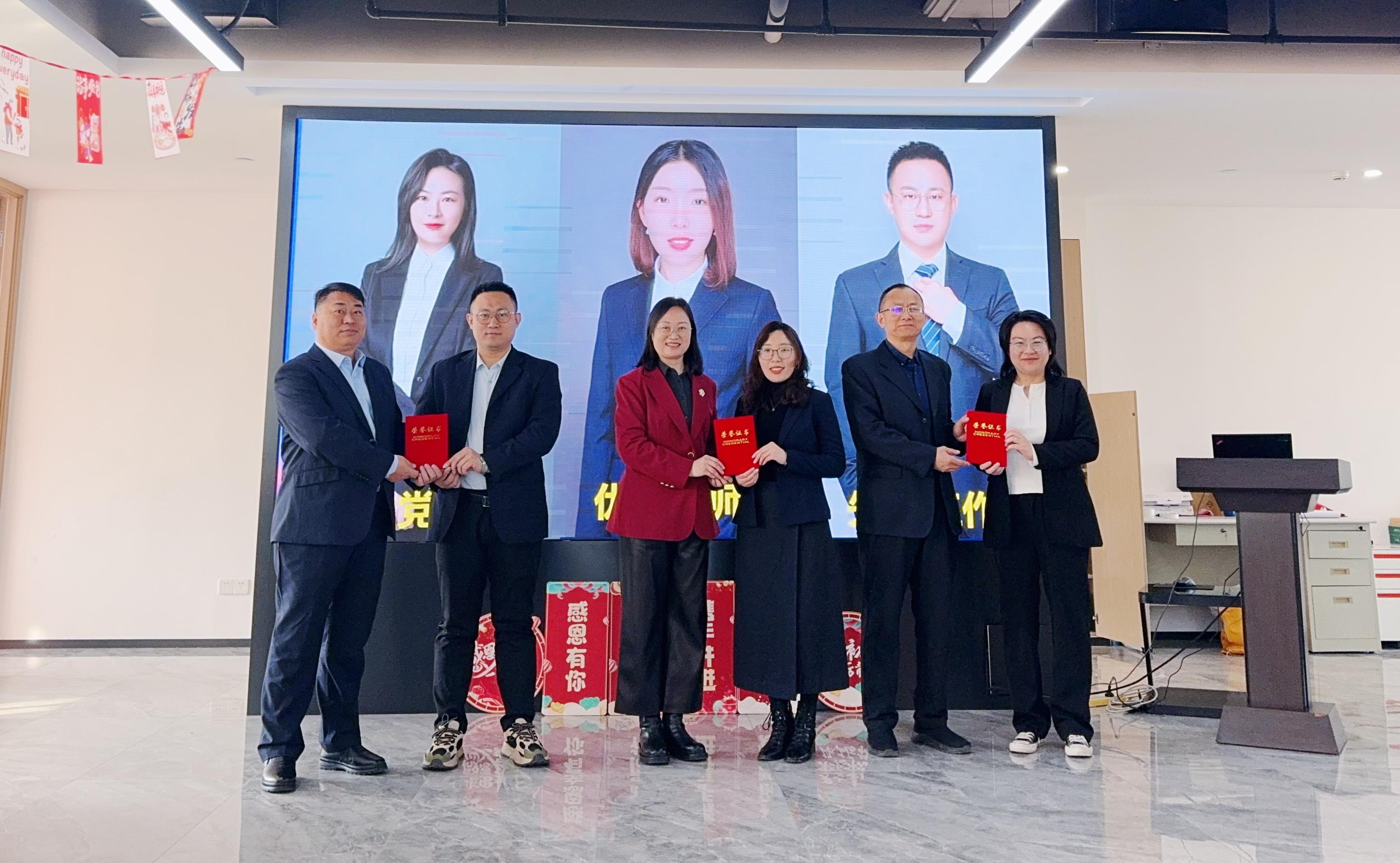 表彰环节,李相杰主任宣读了律所过去一年表现突出的优秀人员——优秀党员赵丹青、优秀律师丁艳茹、先进工作者董再恒, 并由合伙人时英、张辉玉、张洪涛为优秀人员颁奖。